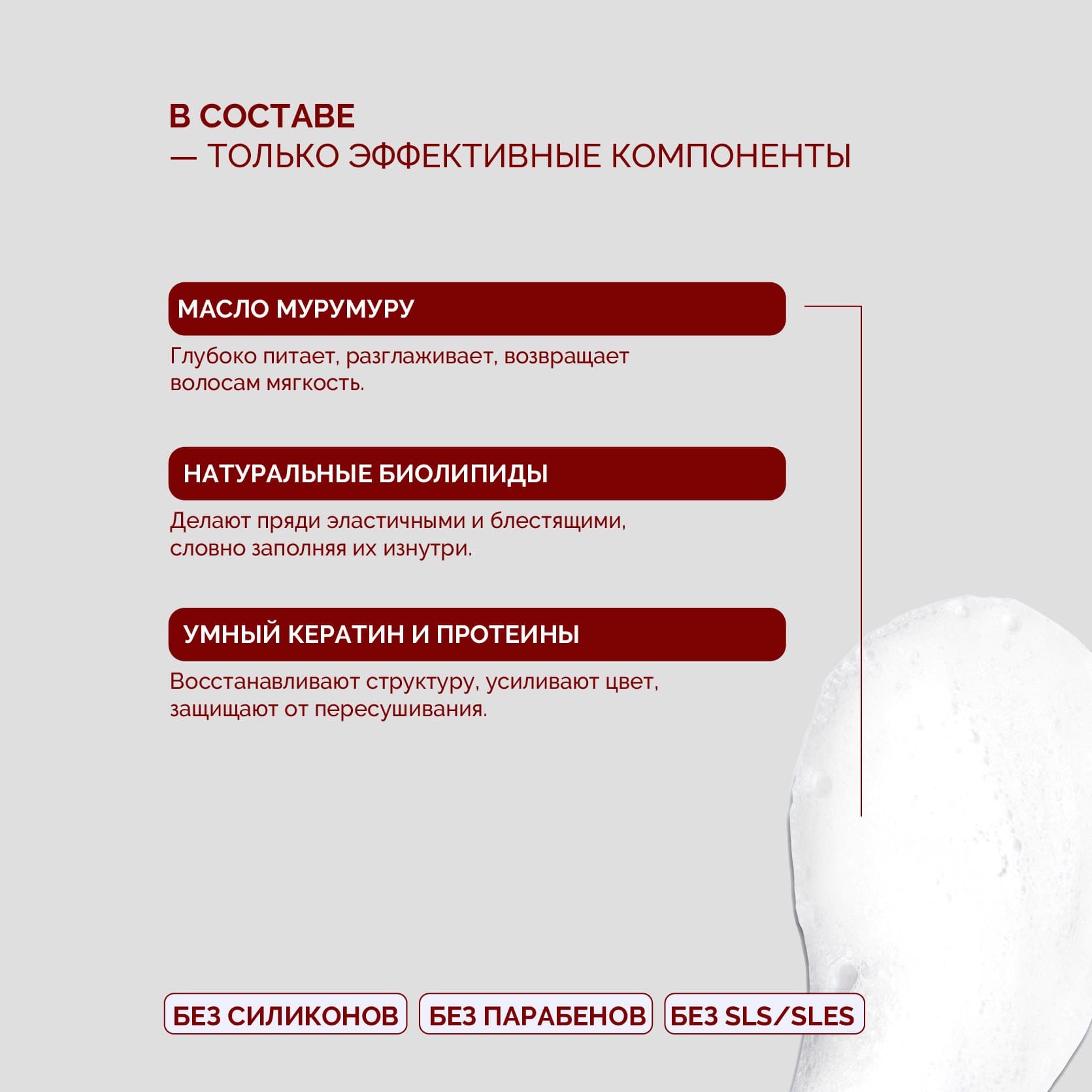 Бальзам обеспечивает бережное восстановление и защиту окрашенных волос, продлевая насыщенность цвета и улучшая структуру волос.