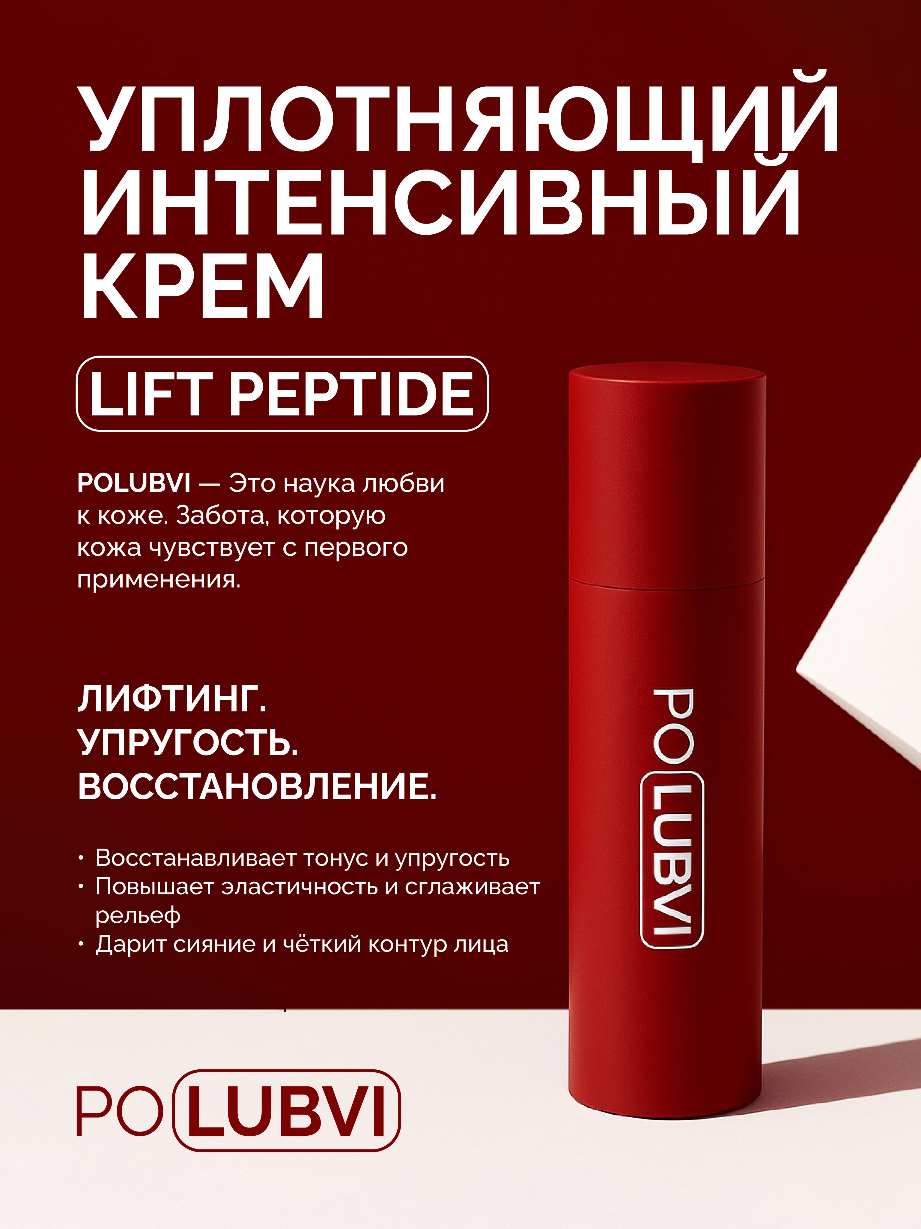 Крем LIFT PEPTIDE - интеллектуальный уход нового поколения для тех, кто ценит время и красоту кожи. Этот крем работает глубоко и точно — возвращает ТВОЙ код молодости, зашитый в каждую молекулу.