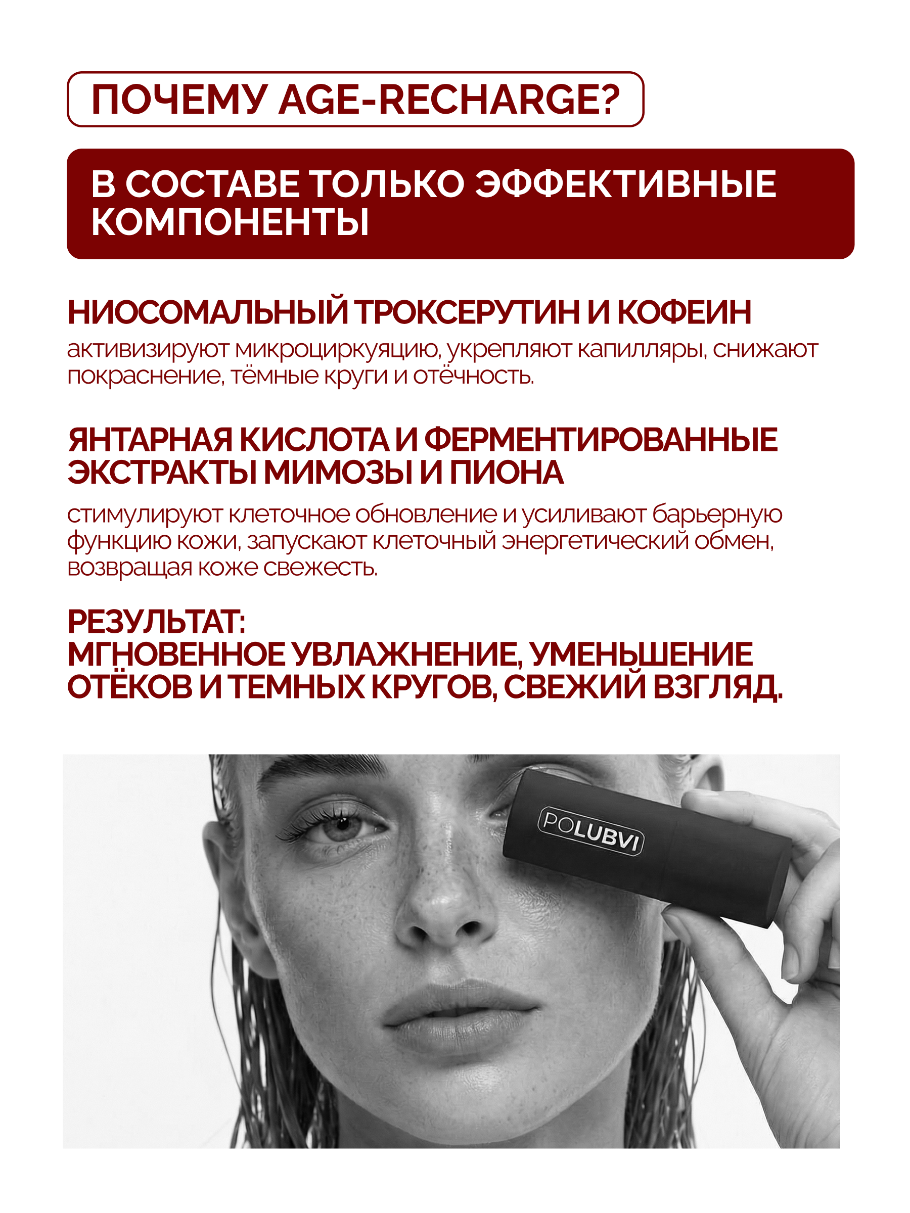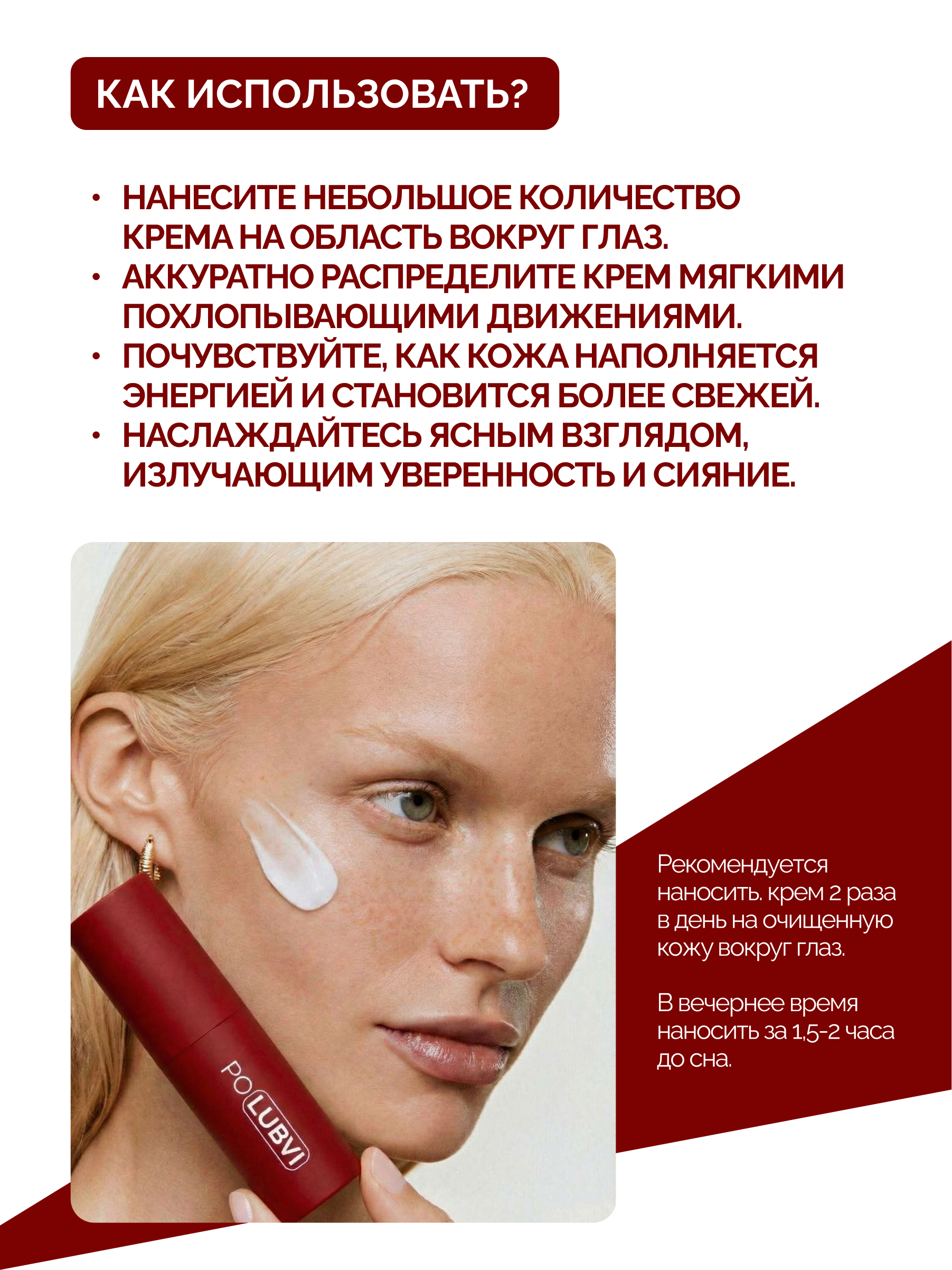 POLUBVI — это наука любви к нежной коже вокруг глаз. Забота и защита, которую она чувствуют с первого применения.